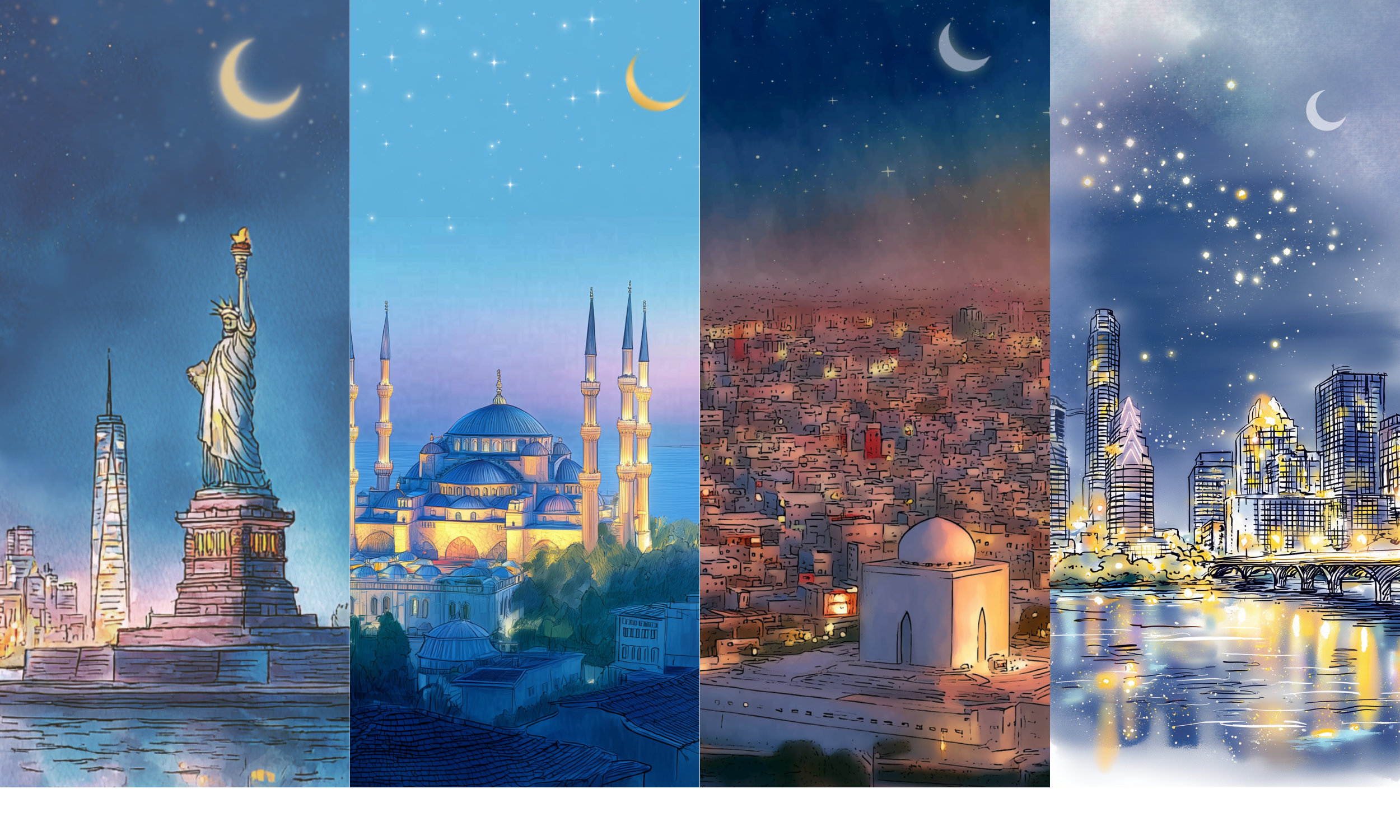 Gentle, rhythmic stories celebrating cities through a Muslim lens.